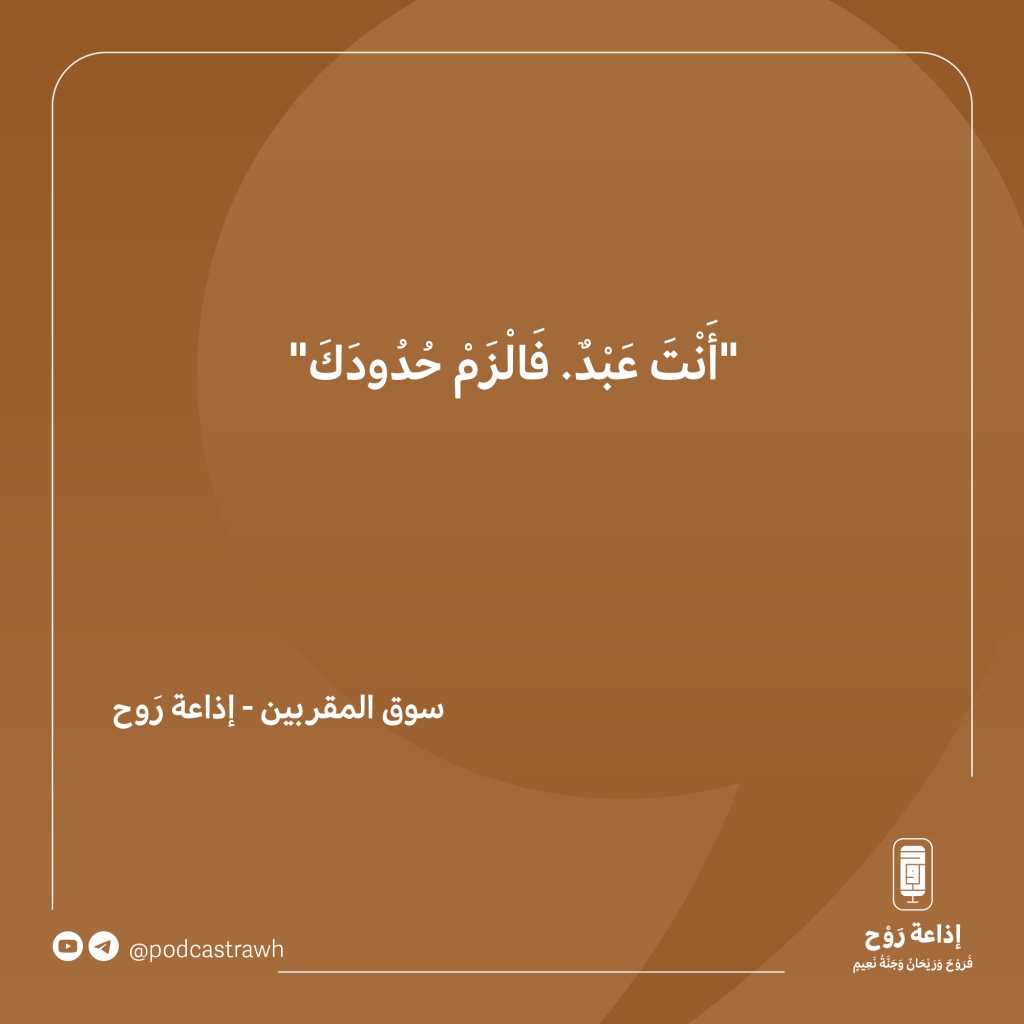إن روح العبودية أن تكون مع أمر الله لك كوقت أمرك “كُنْ” فكنت. بلا منازعةٍ ولا معارضةٍ ولا مجادلةٍ ولا فكرٍ ولا كبرٍ ولا نفسٍ ولا اختيارٍ ولا تدبيرٍ؛ وإنما تمام الامتثال والخضوع. واعلم أن من ترك ظاهر العبودية من أشكال العبادات من الفرائض أو التطوع اتهمته أدوات الشريعة في إسلامه، ومن ترك باطن العبودية من ذوق القلب لها امتحنه الصراط يوم القيامة في إيمانه. فكن للملك عبداً، والزم صفات عبوديتك، فإنما هي حقيقتك وبها نجاتك.